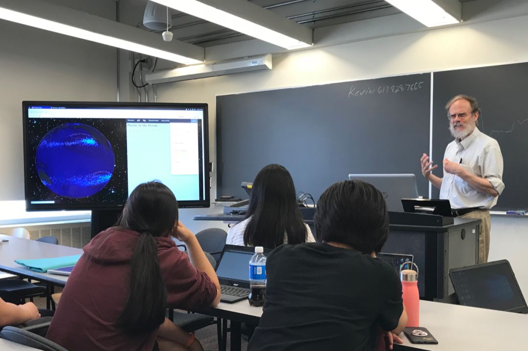 “Flierl教授向訓練營的學生們說明如何去分析關鍵的海洋和大氣層數據,從數據中如何觀察氣候變化,而海洋與大氣層之間的互相影響關係。同時,向學生解釋人類活動如何影響我們的星球且反作用影響我們的生活方式…「