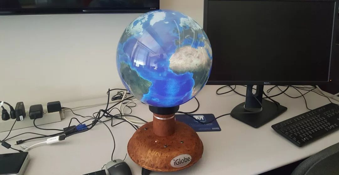 第一個SPEAKER是Flierl教授的博士學生:Ms. Madeleine Youngs,她今日的主題是污染, 目前她的研究集中在①Black Carbon ②Sulfur Dioxide ③Nitrous Oxides。她用3D的IGlobe進行演示和教授,讓學員們清晰且形象的去瞭解污染物的來源,我們可以從3D的IGlobe上清晰的發現,污染大多都來源自城市人口及工業集中的地區,而這些污染物最終前往了我們的海洋
