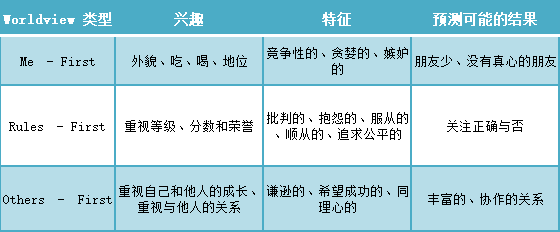 當然,上述三種主要的世界觀之間並不是涇渭分明的,也可能是混合的,在三種之間波動;混合後的世界觀既有正面的,也有消極的表現,如優柔寡斷的,非對抗性的等等,並非絕對。